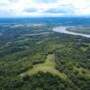 A imagem retrata a localidade de Boa União, em Novo Machado, na região de divisa próxima à gruta e ao município de Porto Mauá. No cenário se destacam dois importantes cursos d’água: o majestoso Rio Uruguai, que domina a paisagem ao fundo, e o Rio Santa Rosa, que também marca parte das divisas da região — inclusive no trecho em que Novo Machado faz limite com Tuparendi.