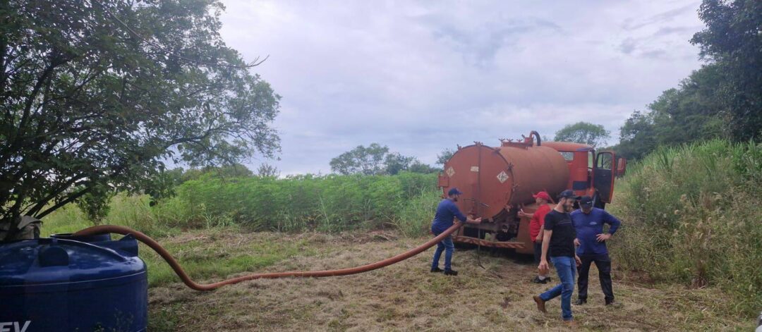 Além disso, o município vem realizando o reabastecimento de bebedouros para animais, buscando minimizar os prejuízos enfrentados pelos produtores rurais e amenizar os efeitos da estiagem sobre a produção.